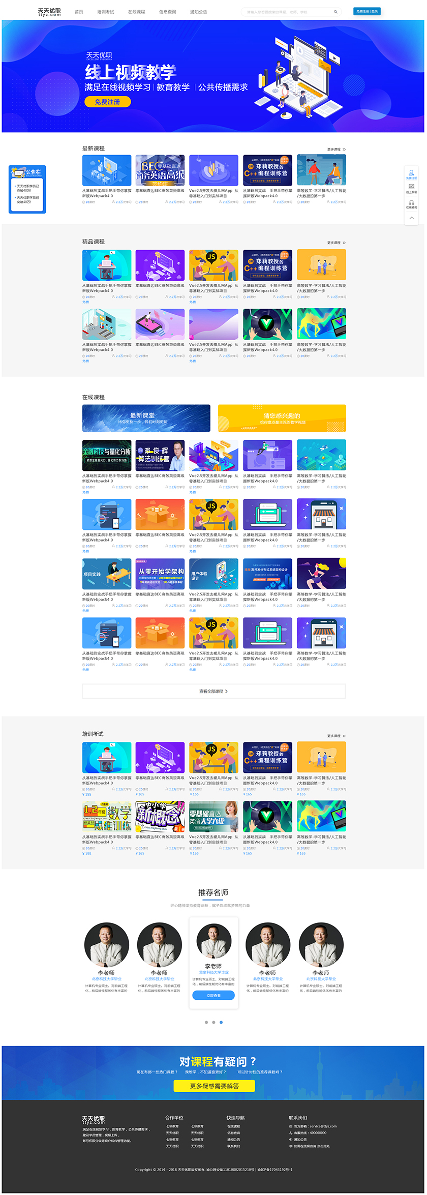 Project Description 满足在线视频学习,教育教学,公共传播需求, 建设学员管理,视频上传, 账号权限分级等商户后台管理功能 Official website address 盐城http://tiantianyouzhi.com/ I want to share